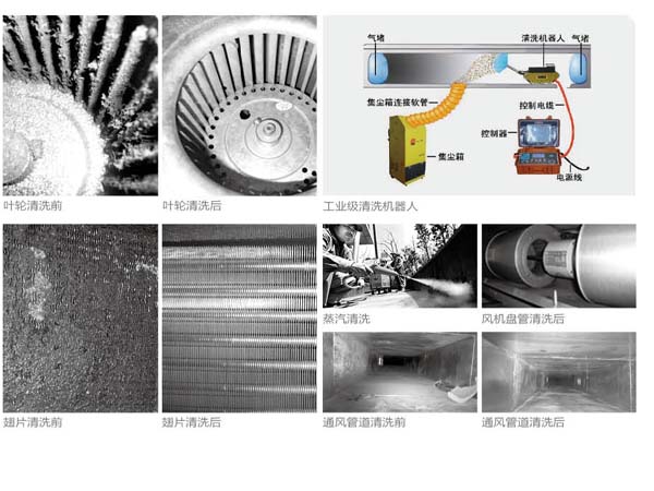 隨著空調(diào)使用年限的增加,通風系統(tǒng)內(nèi) (管道、風機盤管的翅片、渦輪電機的扇 (管道、風機盤管的翅片、渦輪電機的扇葉、新風機組換熱板翅片、空氣過濾器等)逐漸堆積起了大量的污染物,既增加了設(shè)備的負荷又浪費了電力還給室內(nèi)的空氣帶來了極大的污染。這些灰塵中有大量有害的細菌、霉菌、軍團菌和病毒,嚴重威脅我們的健康,《2002年世界衛(wèi)生報告》將室內(nèi)空氣污染列為人類健康十大危害之一。我們在享受舒適的同時它也給我們帶來了污染和危害。